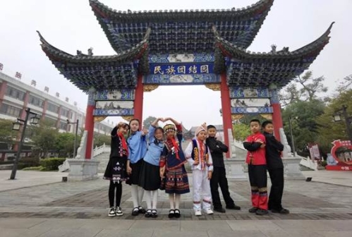 12月29日,五华区长春小学与宁洱县民族团结实验小学学生共同参观了民族团结园。