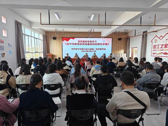 结合党风廉政建设和师德师风等工作,全体教职工学习了《安宁市教育体育局廉政风险防控手册》《新时代幼儿园教师职业行为十项准则》《幼儿园教师违反职业道德行为处理办法》《云南省中小学幼儿园教师违反职业道德行为处理实施细则(试行)》《津贴补贴和福利发放“负面清单”》《中共安宁市纪律检查委员会 安宁市监察委员会关于违反中央八项规定精神、破坏营商环境的典型案例通报》,结合实际案例分析,以案为戒,引导广大教职工牢固树立政治意识,筑牢廉政思想防线,时刻警醒自己,做到自重、自省、自警、自励。同时学习了《中国共产党宣传工作条例》《未成年人网络保护条例》《云南省矛盾纠纷多元化解条例》《信访工作条例》《新时代公民道德建设实施纲要》等内容,引领全体教职工讲政治、强担当、扬师德、保稳定,立足岗位,执好理想信念之笔,践行教育初心;做有理想信念、有道德情操、有扎实学识、有仁爱之心的好老师,以德修身,恪守师德;以德修己,弘扬师魂;以德育人,桃李芬芳。
