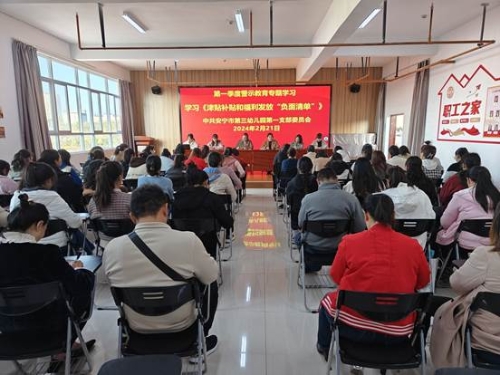 为进一步营造善于学习、勇于实践的浓厚氛围,锻造“信念过硬、政治过硬、责任过硬、能力过硬、作风过硬”的教师队伍,2024年2月22日上午,安宁市第三幼儿园组织全体教职工进行政治理论学习。