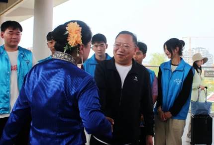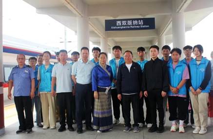 在西双版纳站站台,穆仁早看望了在岗位上的学生代表,希望他们在实践大课堂中努力学习,同时叮嘱车务段领导要指导和培养好,关心和爱护好实习学生。