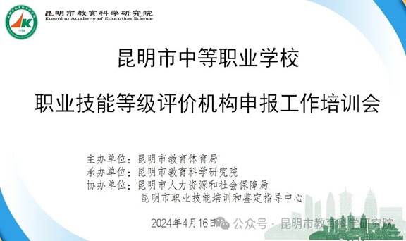 为认真贯彻落实《云南省职业教育提质效实施方案》(云政办发〔2024〕22号)文件精神,支持公办中等职业学校按程序申报职业技能等级评价机构,更好的为在校生开展职业技能培训和评价工作。2024年4月16日下午,昆明市中等职业学校职业技能等级评价机构申报工作培训会在昆明市教育科学研究院6楼会议室举行。