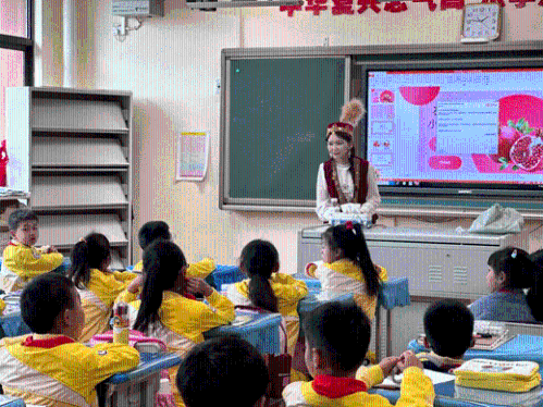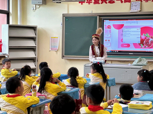 活动伊始,新疆维吾尔族的呼热拉依老师以《红石榴》为题,通过讲述自身从新疆到云南的求学经历,向学生传达了民族团结的深刻意义。在她的引导下,学生们观察石榴的形态,动手绘制出鲜艳的石榴作品,以此表达对民族团结的理解和向往。