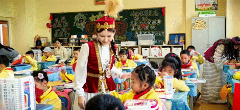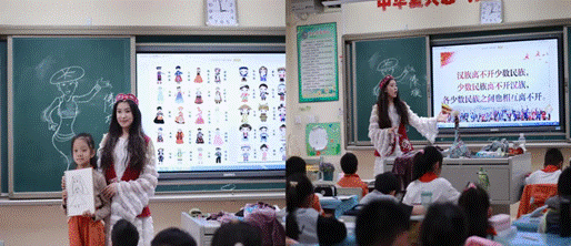 身着新疆维吾尔族服饰的玛尔江老师带来了《多姿多彩的民族服饰》美术思政课。她通过展示不同民族的服饰特征,让学生们领略了民族服饰的多样性,并鼓励学生们发挥想象力,绘制自己喜欢的民族服饰,从而加深对民族团结的认同。