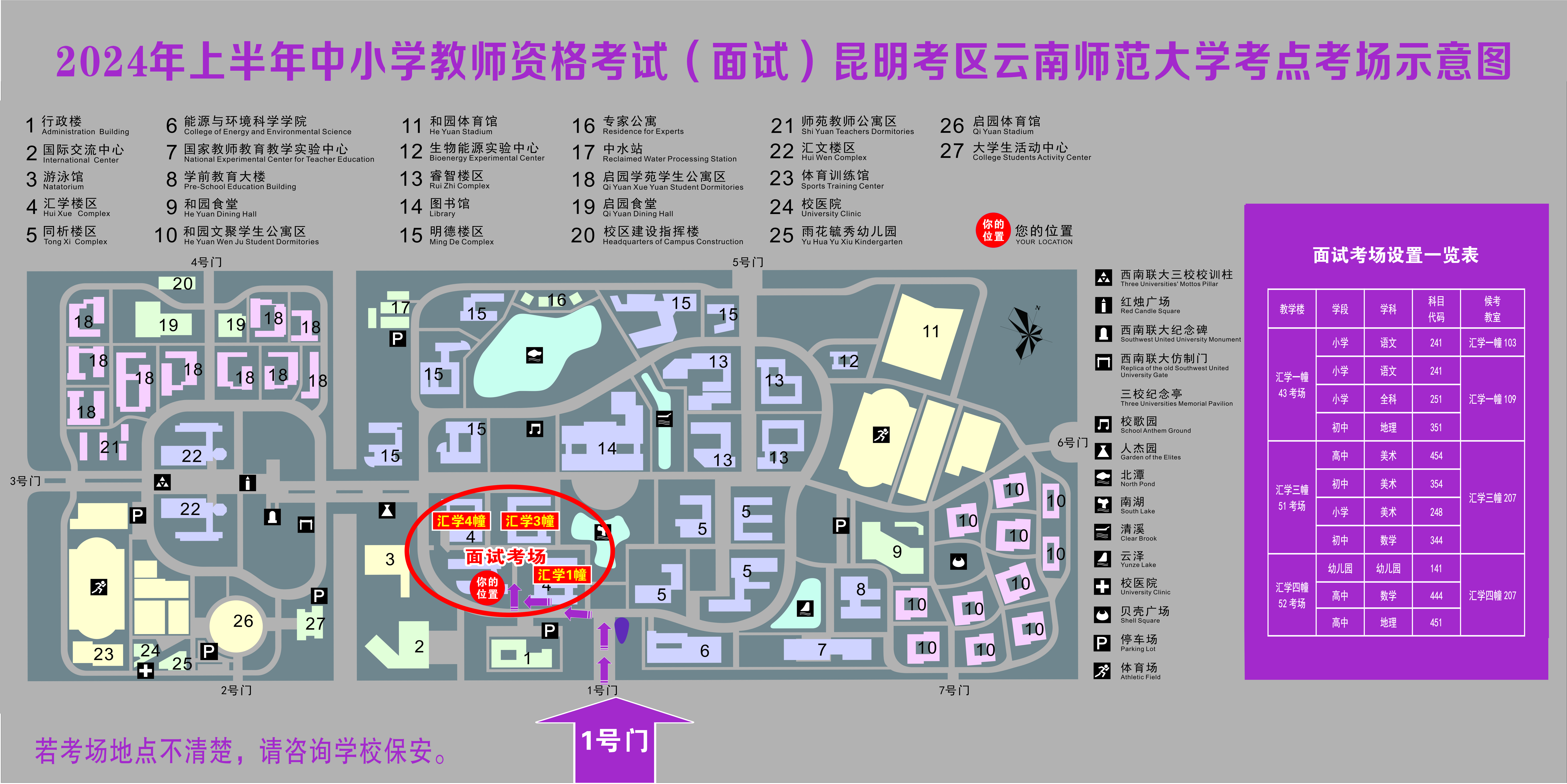 (二)云南师范大学呈贡校区考点:昆明市呈贡区聚贤街768号,从1号门进入;