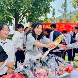 活动期间,“预热”“抽奖”“秒杀”等促销活动接连出现,各摊位直播、零售、展演等营销手段齐上,为财经商贸专业、信息技术专业、财务管理等专业学子搭建了一个全真的“集市”。16个摊位涵盖怀旧小零食、饰品、DIY、盲盒小游戏、雪糕饮料等,茶艺展示、调酒展示等摊位摆满水果、花卉、盆栽、手工等创意作品,吸引全校师生围观、消费,为校园增添了一抹“烟火气”。