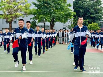 随后,盘龙职高的住校学生带来了学生素养展示,通过内务展示、花样队列、旗语操、格斗术等,展现了同学们积极向上的精神风貌。