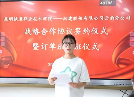 李瑞林表示,润建股份有限公司多年来深耕通信行业,是领先的数字化智能运维服务商、国家高新技术企业、国家知识产权优势企业、中国软件百强企业。公司的业务领域与邮电学院的专业群高度契合,长久以来双方在人才供需上建立了良好合作关系。2023年,润建股份有限公司加入学校牵头成立的云南数字经济产业链产教融合共同体,为双方的进一步合作奠定了基础。本次与学院采用订单班模式共同培养符合企业需求的人才。希望以订单班合作为新契机,双方在课程资源开发、产教融合项目、技术创新研发等方面均能有更多合作新成效。