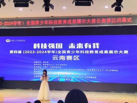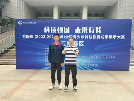 2024年5月26日下午,东川区职成教中心2021级电气班学生李正浩和指导教师张桐老师受邀参加第四届全国青少年科技教育成果展示大赛云南省区域赛闭幕式。据悉,所有赛项的前三名获奖选手齐聚昆明市第三中学参加颁奖典礼,展示科技素养。