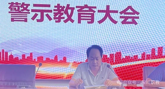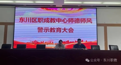 为加强师德师风建设,规范教师从教行为,提升教师职业道德修养, 营造风清气正的教育氛围,增强立德树人的责任感和使命感,5月24日下午,东川区职成教中心召开了师德师风警示教育大会,中心副主任李文宏、教务科科长张华明及全体教职工参加会议。