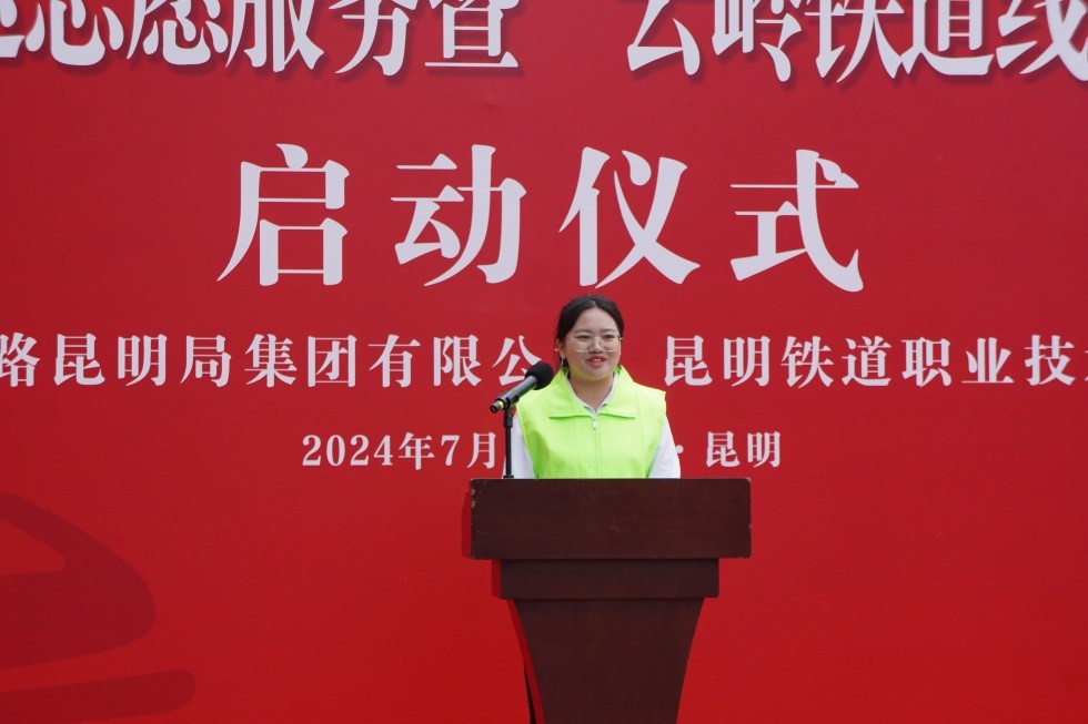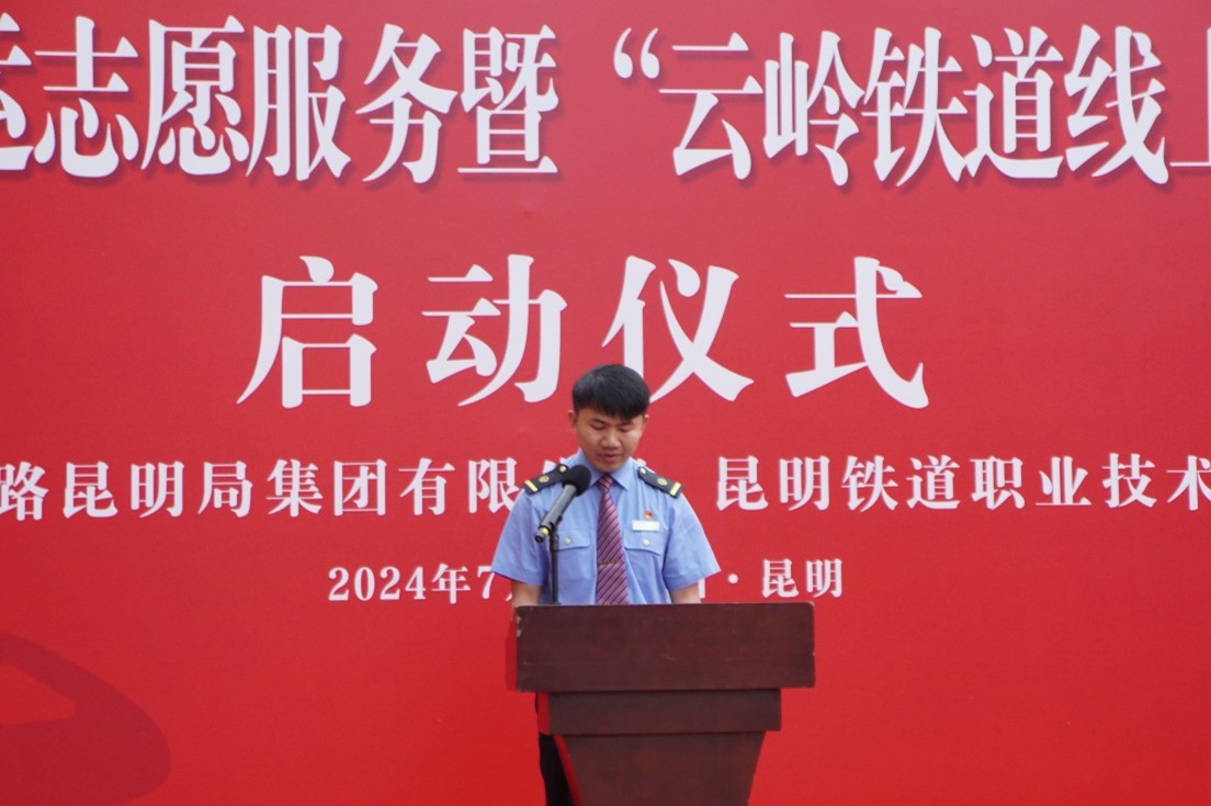 7月5日,大学生支援暑运志愿服务暨“云岭铁道线上的大思政课”启动仪式在昆明铁路客运段进行。
