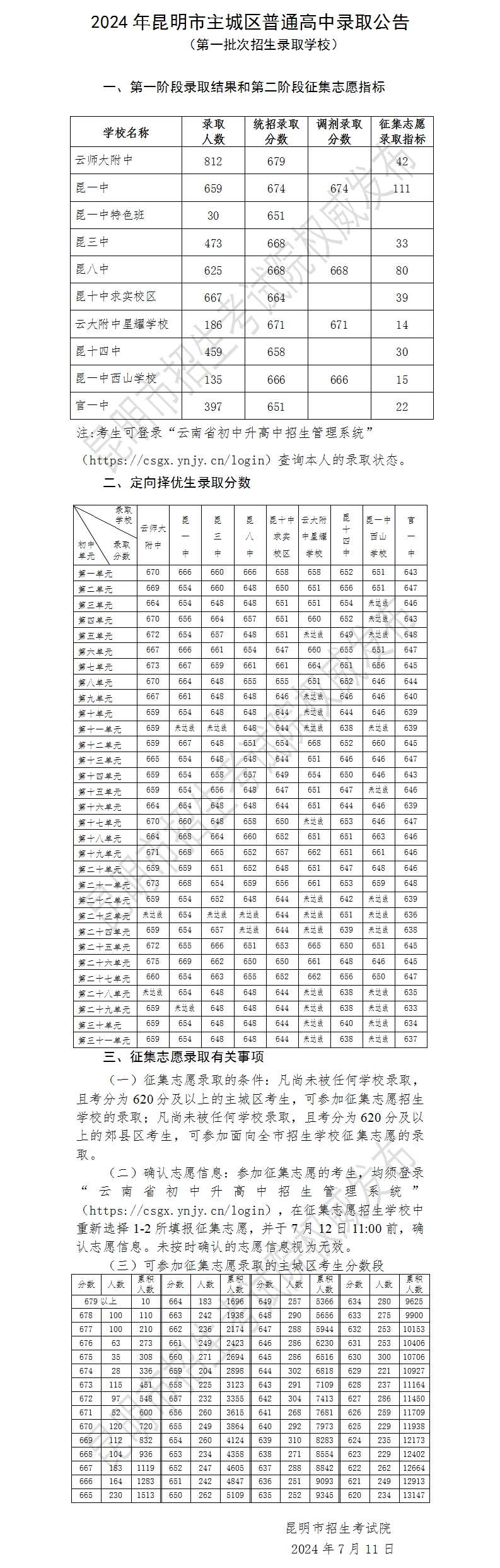 2024 年昆明市主城区普通高中录取公告 (第一批次招生录取学校)