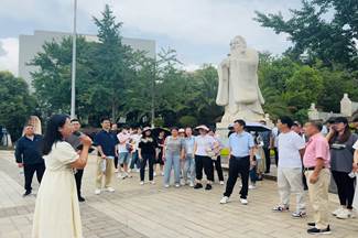 来访人员从名人雕塑长廊拾级而上,先后感受官渡区职业高级中学名人雕塑、石碑刻字所蕴含的文化特色,体味诸子百家文化广场“百家争鸣、魏晋风度、五四精神”三座思想丰碑,深入体会官渡区职业高级中学“尚”长育人的深厚文化底蕴和教育教学理念。