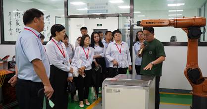 随后,来访人员一行参观了任之厅、数字媒体中心、大数据中心等现代化设施,官渡区职业高级中学在信息化、数字化方面的努力和成果,让来访教师们为之赞叹。此外,参观团队还深入官渡区职业高级中学汽修实训室、工业机器人实训室及物流实训室,了解官渡区职业高级中学校企合作、产教融合发展成果。