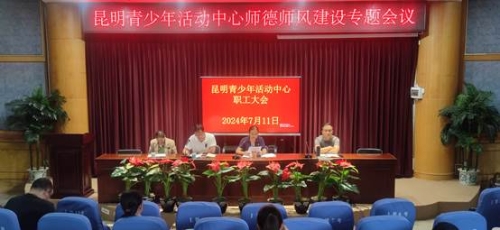 2024年7月11日,在昆明青少年活动中心第89期暑期教育培训工作即将全面展开之际,中心组织全体党员和干部职工召开师德师风建设专题会议。