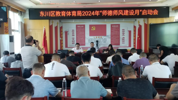 为深入推进师德师风建设,进一步健全师德师风建设长效机制。9月6日,东川区教育体育局召开了2024年“师德师风建设月”启动会。全区中小学(园)书记、校长和机关科室负责人参会。