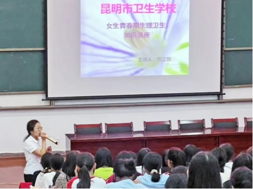为加强女生生理卫生及心理健康的教育和指导,促进身心健康,昆明市卫生学校开展以“用爱拥抱青春 携手健康成长”为主题的女生青春期生理健康系列讲座。