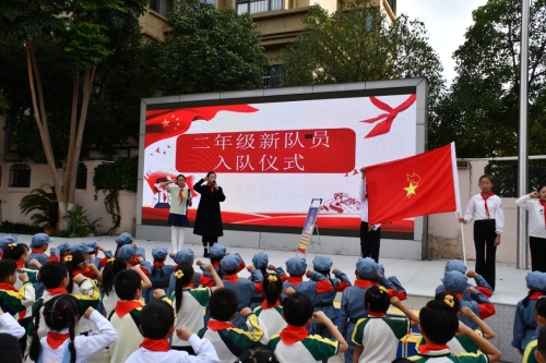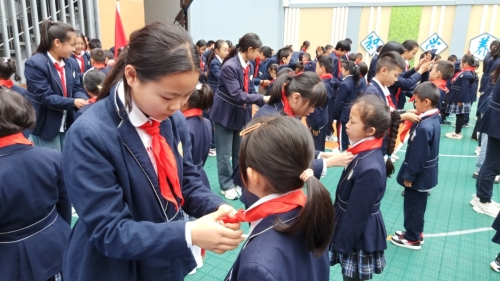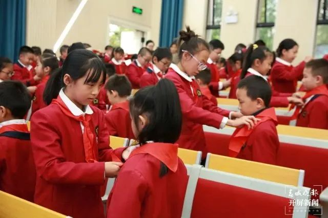 庄重的入队仪式、为新队员佩戴红领巾、入队宣誓……东北师范大学盘龙实验学校以“红领巾爱祖国,争做新时代好队员”为主题,举行了系列主题活动,旨在传承红色基因,增强少先队员的责任感和光荣感。