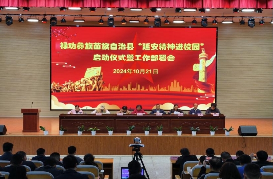 为深入贯彻落实党的教育方针,传承和弘扬延安精神。10月21日,禄劝县“延安精神进校园”启动仪式暨工作部署会在红军小学召开,同步开展理论宣讲、课题研讨。主会场设在禄劝红军小学报告厅,乡镇各中小学校设分会场以视频会议形式参会。昆明市延安精神研究会常务副会长杨芳、副秘书长李晓四、缪如琼,禄劝县延安精神研究会会长张光文、副会长、秘书长,县委宣传部相关负责人,共青团禄劝县委相关负责人,昆明市延安精神研究会第四届理事、寻甸县延安精神研究会秘书长马世文,县教体局相关领导及部分科室负责人,县城及周边17所学校党组织书记、德育室主任、思政课教师代表及红军小学师生代表,近800人参加会议。