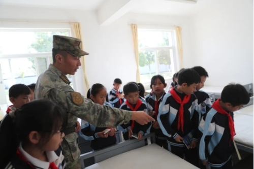 最后,全体师生观看了旅史纪录片,师生眼中闪烁着对军人的敬佩与崇拜之情,一帧帧震撼感人的画面,让师生们深刻感受到了军人职业的崇高与伟大。在大队辅导员的指挥下,全体少先队员齐声高唱《中国少年先锋队队歌》以表示当好社会主义建设者和接班人的决心,同时以表达对解放军叔叔的感谢。