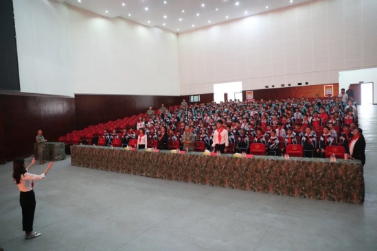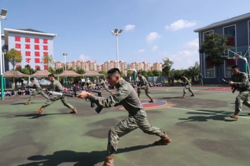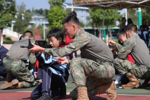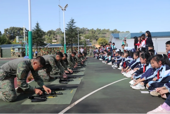 随后,师生们参观了部队的营房、训练场和装备库。在营房里,他们看到了整齐划一的床铺、干净整洁的内务,感受到了部队严谨的作风和纪律性。在训练场上,官兵们展示了各种军事技能、战术动作和枪支的组装与拆卸过程,他们的矫健身姿和娴熟技艺赢得了师生们的阵阵掌声;在官兵们的指导下,同学们亲身体验了枪支的组装过程。在装备库里,师生们近距离接触了各种先进的武器装备,了解了装备在保卫国家安全中的重要作用。