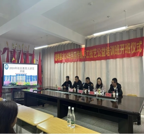2024年11月8日下午,嵩明县社区教育大讲堂——民族传统手工艺培训班在嵩明县职业高级中学开班。出席本次开班仪式的领导有:嵩明县宗教局局长马彦玺、嵩明县文旅局局长陶云坤、嵩明县文化馆馆长杜永云、嵩明县职业高级中学校长岳锦云。