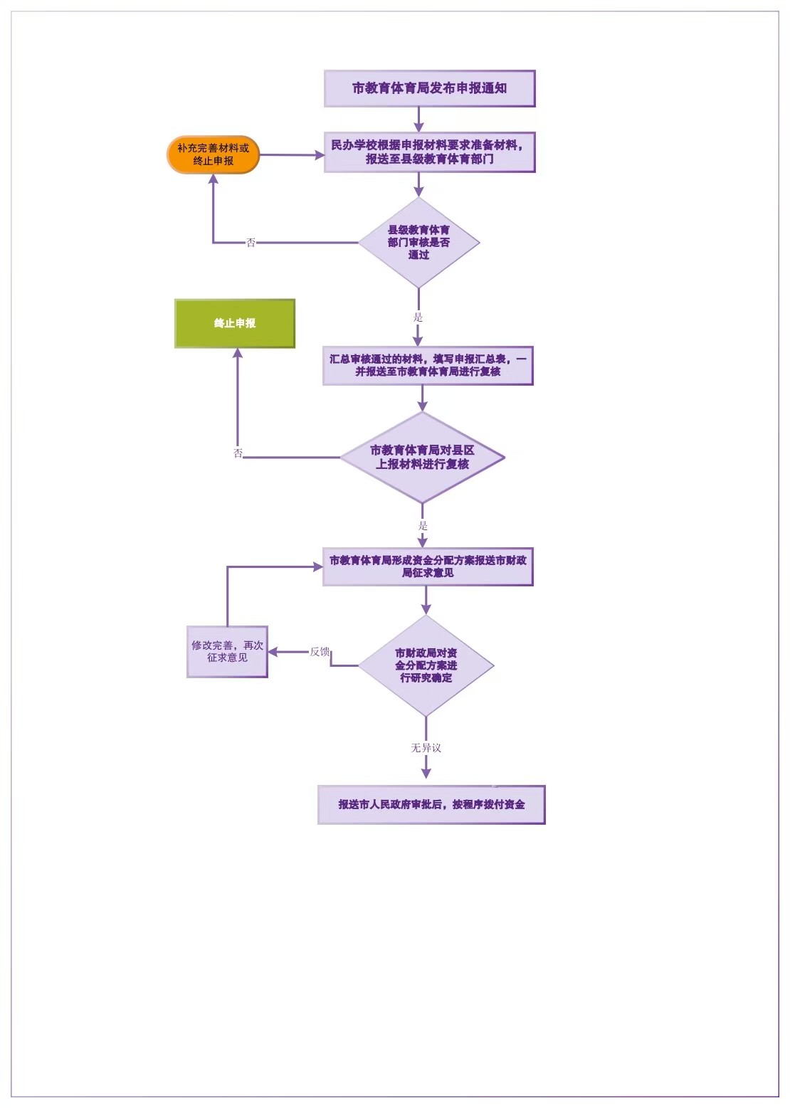 昆明市民办教育发展补助资金申报流程图