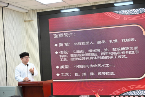 在"面塑—指尖上的非遗"分享会上,江甦老师向学生展示了融合现代审美的面塑作品。从憨态可掬的滇金丝猴、身着各民族服饰的娃娃到各式各样的卡通人物,传统技艺与现代元素的碰撞令师生惊叹。"面塑不仅是手艺,更是时代的记录者。"江甦分享通过创作反映民族团结、生态保护等主题的系列作品,让面团"讲述"云南故事。