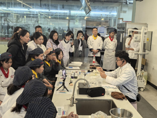 揭牌仪式后,校园工作室首场传习教学活动火热展开。师生围坐在烹饪实训室操作台,指尖翻飞间,揉、捏、搓、点等技法将彩色面团化为栩栩如生的花卉动物。江甦老师穿梭指导时反复强调:"细节处见匠心,每道褶皱都是文化的年轮。"
