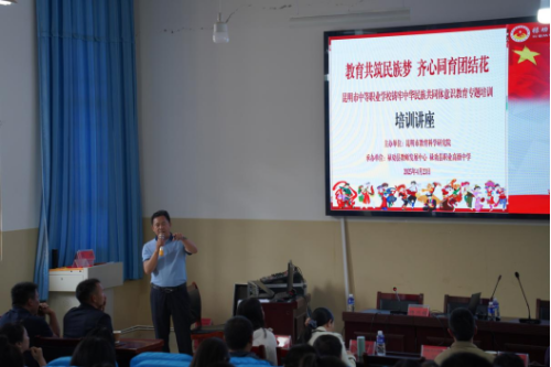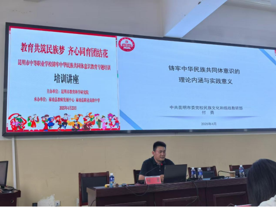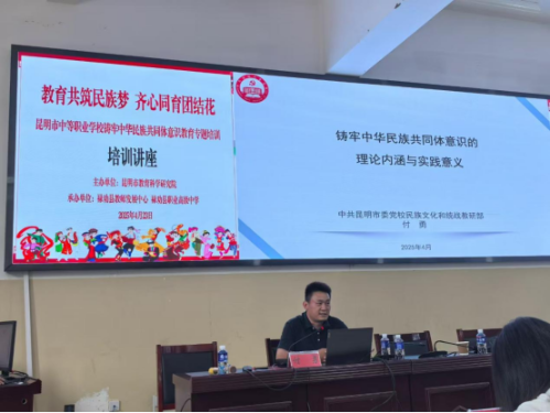 为贯彻落实《教育强国建设规划纲要(2024—2035年)》,加强铸牢中华民族共同体意识教育,进一步发挥职业教育在培养技术技能人才、促进民族团结进步方面的作用,近日,昆明市中等职业学校“铸牢中华民族共同体意识”教育专题培训活动在禄劝县职业高级中学成功举办。此次活动由昆明市教育科学研究院主办,禄劝县教师发展中心、禄劝县职业高级中学承办,来自昆明市中职学校、禄劝县中小学、禄劝职中的部分教师代表共150余人参加了培训。