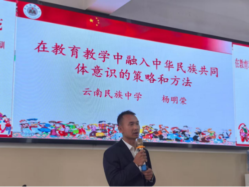 云南民族中学杨明荣老师聚焦课堂教学,分享了价值观引领与民族精神培育为核心的实践策略。借助具体的教学案例,展示了如何在日常教学中,潜移默化地培养学生的民族团结进步意识。