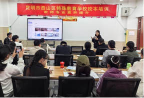 为进一步提升教师信息化教学能力,推动人工智能技术与特殊教育课堂教学深度融合。10月31日下午,西山区特殊教育学校举办了主题为《人工智能赋能教育教学的探索与实践》的校本培训活动,本次活动特邀中央民大昆明附小党支部副书记“有言官方3D数字人AI讲师”“3D数字人视频创作师”李学平老师担任主讲人,学校全体教师参加培训。