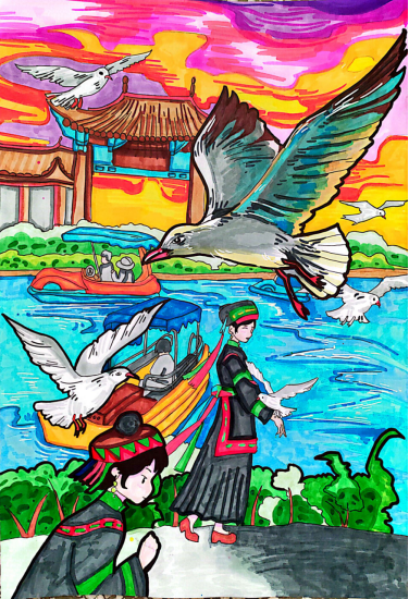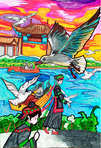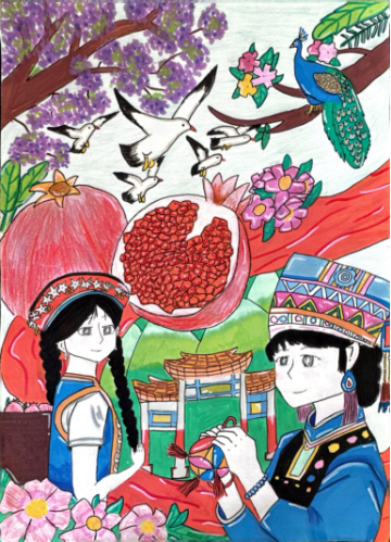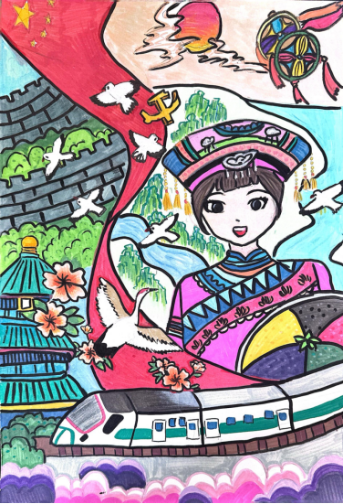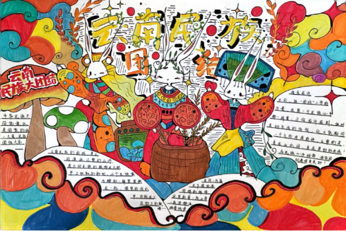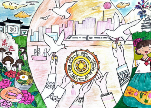 在近日昆明师专附中的“共画同心圆”主题美术作品展中,一批优秀作品脱颖而出,荣获一等奖和二等奖。这些作品不仅展现了同学们扎实的艺术功底,更通过色彩与线条表达了他们对民族团结和校园情谊的深刻理解。