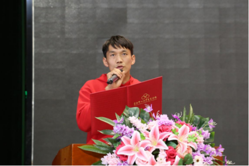 特邀嘉宾中国职业篮球运动员、CBA全明星扣篮大赛冠军矣进宏和同学们分享了自己的“拼搏人生”。矣进宏来自云南玉溪的一个小山村,因为热爱与坚持,在经历了无数不为人知的训练和伤痛之后,终于站上了全国篮球的最高舞台,在三十岁的年纪通过选秀进入北京控股男篮,成为CBA历史上第一位从草根走出、通过选秀跻身联盟的球员。他的故事感动着每一位追梦路上的学子,同学们听后由衷赞叹和佩服,这份永不言弃的精神也将激励同学们在接下来的时光里全力拼搏、迎难而上。