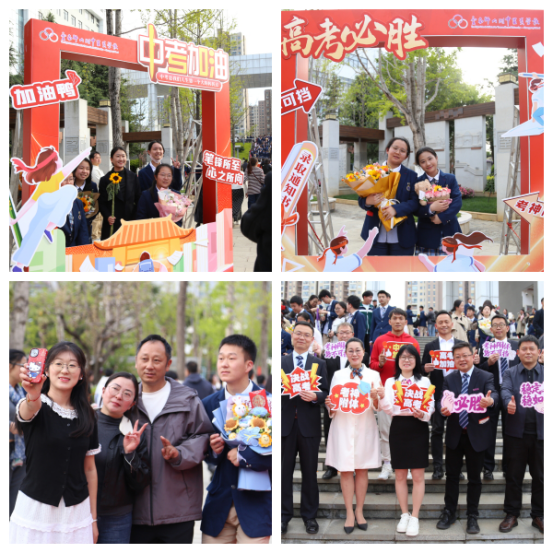 走过奋斗门,老师们已在前方等候,伴随着击掌与“加油”的声音,学子们走向红毯终点。随后,同学们和家长、老师在校园各处“打卡”拍照,用相机定格这份独特而珍贵的记忆。